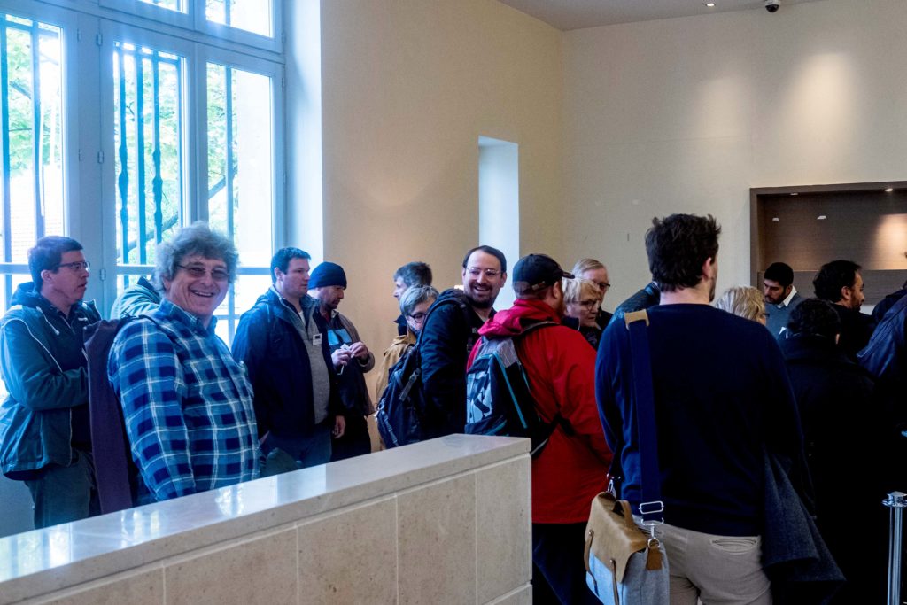 Bon, on ne dira rien, parce que c’était pour les personnes âgées. Et puis qu’importe puisque nous avons trouvé deux solutions pour le prix d’une ! Finalement, tout le monde a été accueilli, les inscriptions validées, les badges distribués et les participants regroupés… dans deux salles différentes. Le premier groupe, composé des petits veinards arrivés les premiers, est resté dans la salle de presse du Ministère, à l’opposé de l’entrée principale.